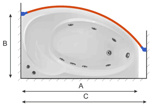 Карниз подходит, когда стоит задача повторить контур угловой ванны и закрепиться в противоположные стены. Этот карниз выбирают в случаях, когда ванна зажата вплотную между тремя стенами, или между ванной и стенами присутствуют зазоры 10-20 см до стены (полочки, ниши и пр), чтобы шторка перекрывала зазоры.